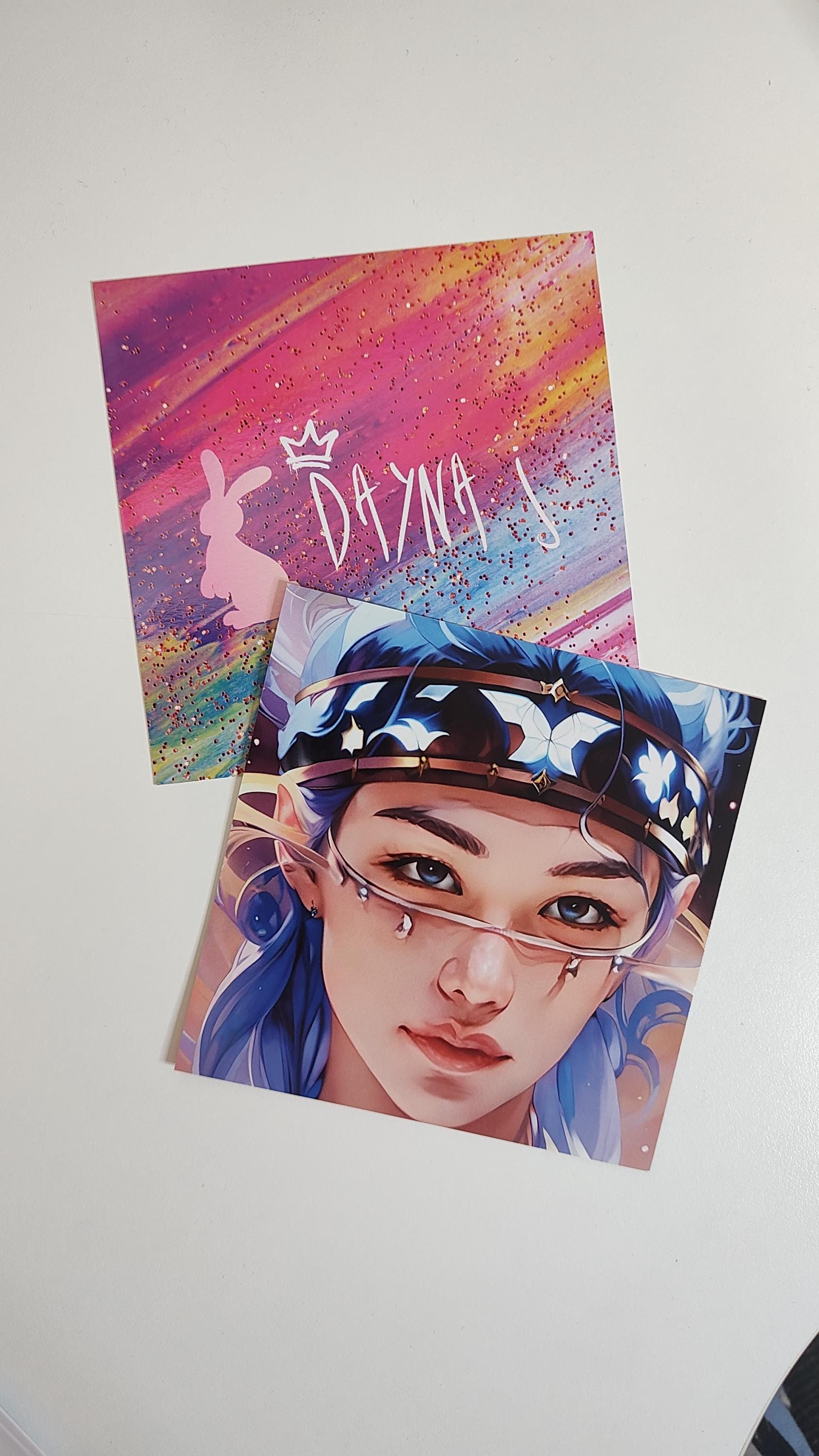 Dayna always sends her art in adorable high-quality packaging and also always includes really fun (and very nice) extras! While all of that is wonderful, it doesn't overshadow how great Dayna's art is! I love the style and they are printed on satisfyingly thick paper / card stock. I love the face chain on this print, and the shade of blue of Felix's hair!