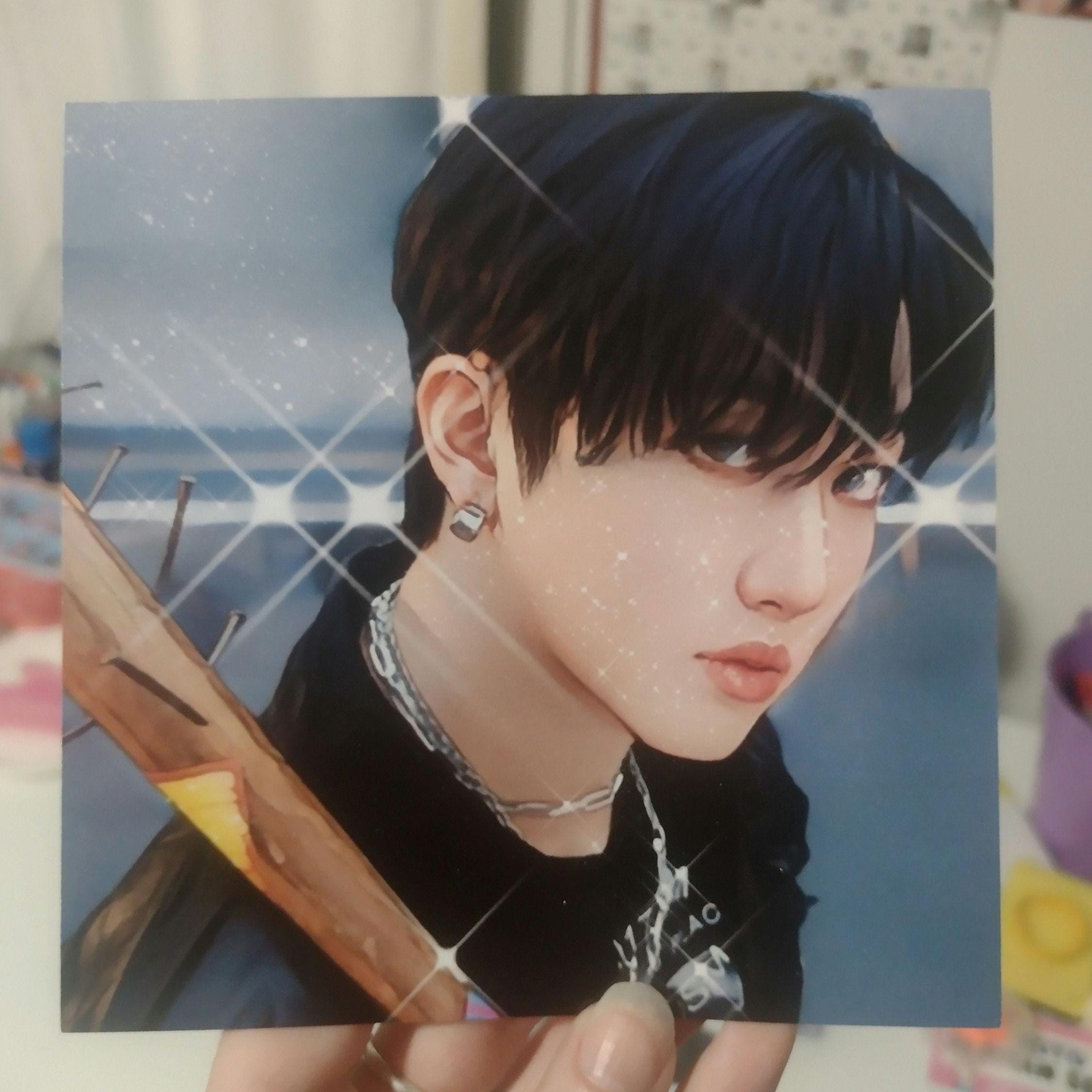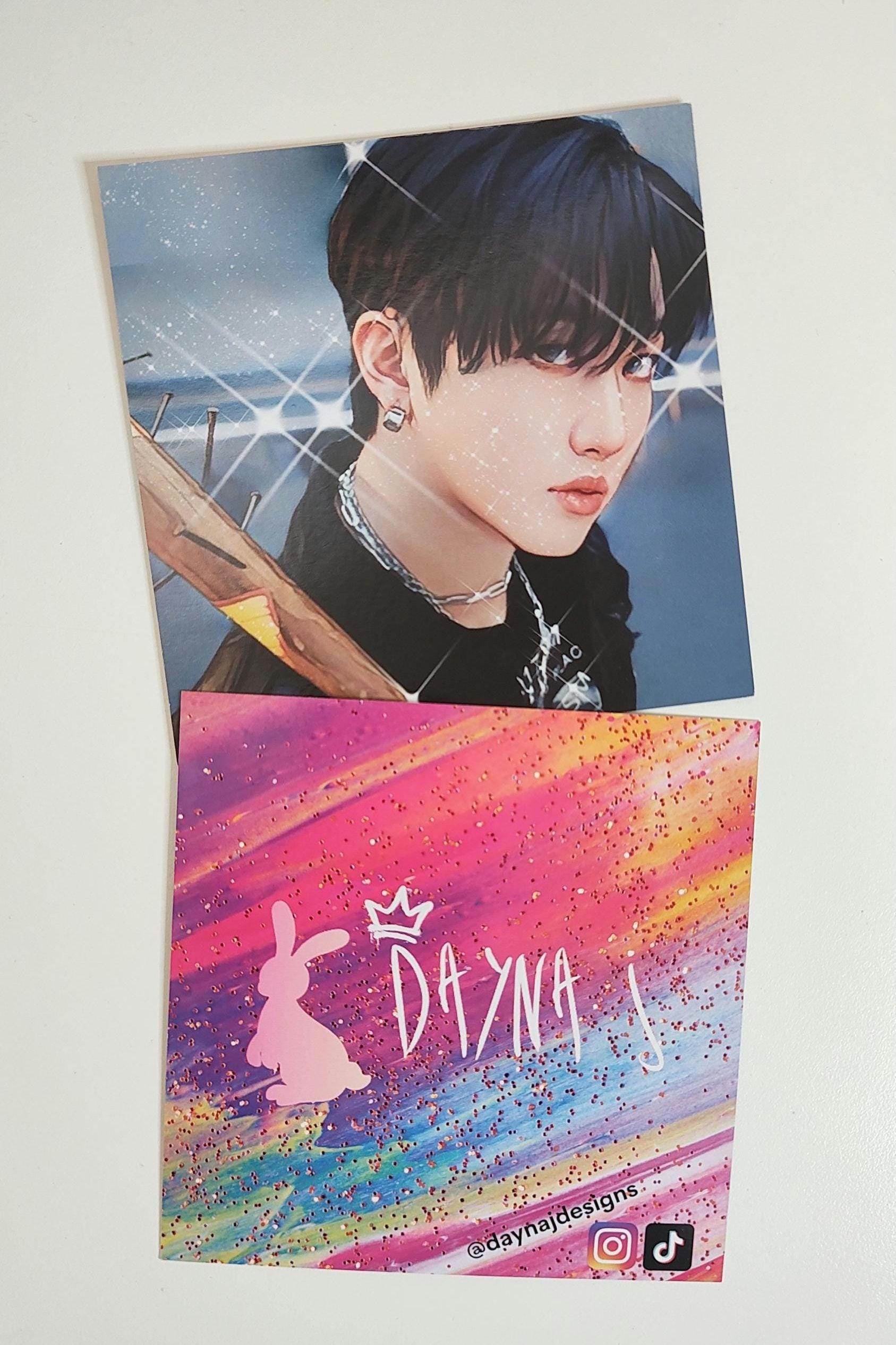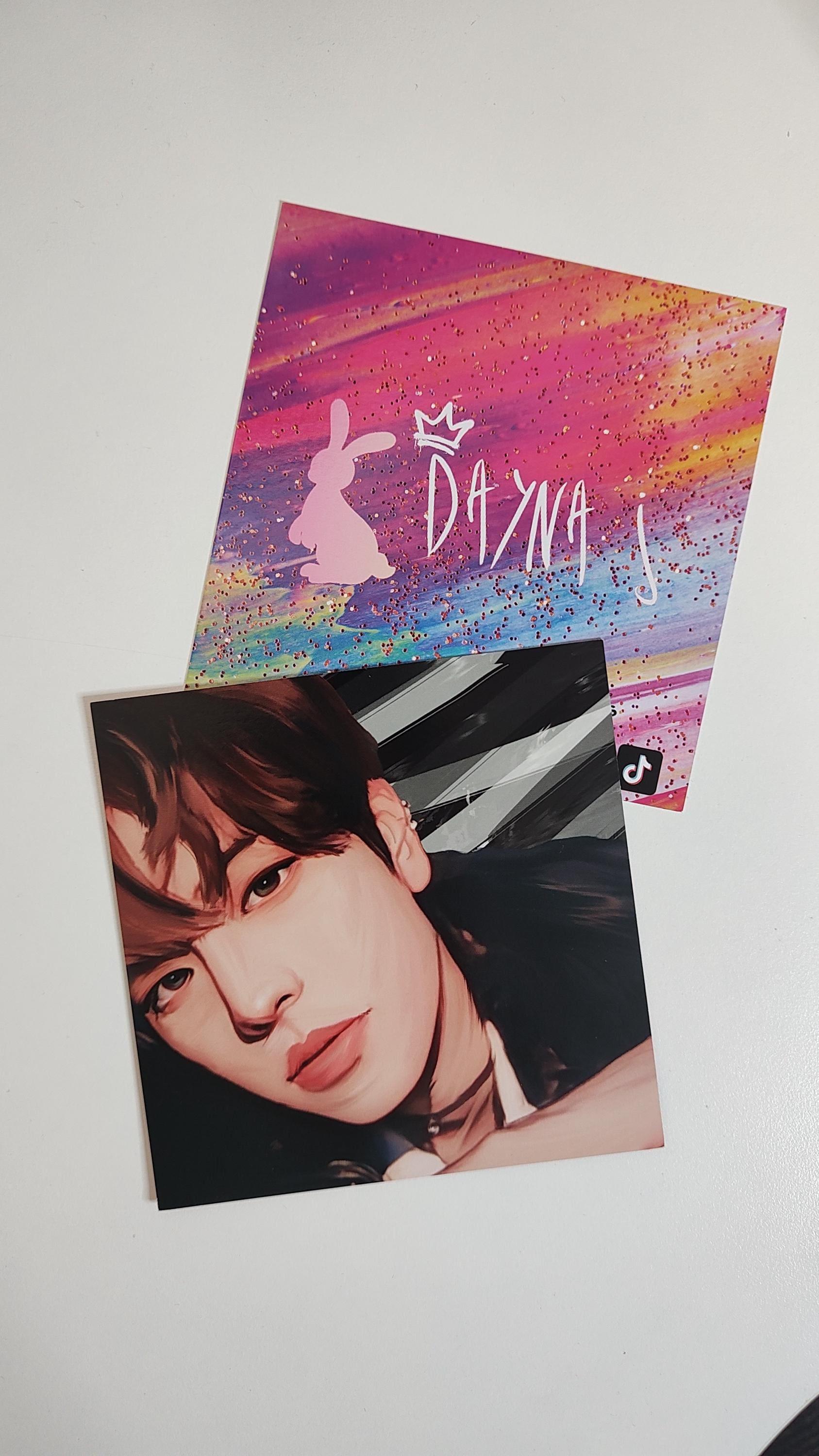 Dayna always sends her art in adorable high-quality packaging and also always includes really fun (and very nice) extras! While all of that is wonderful, it doesn't overshadow how great Dayna's art is! I love the style and they are printed on satisfyingly thick paper / card stock. It can be harder to find good art of Changbin, so I was extra happy about this print! I love the sparkle effect and the bat he's carrying!