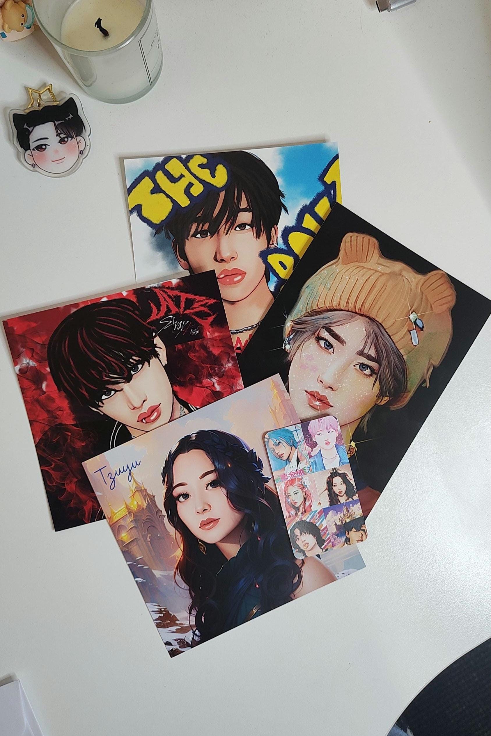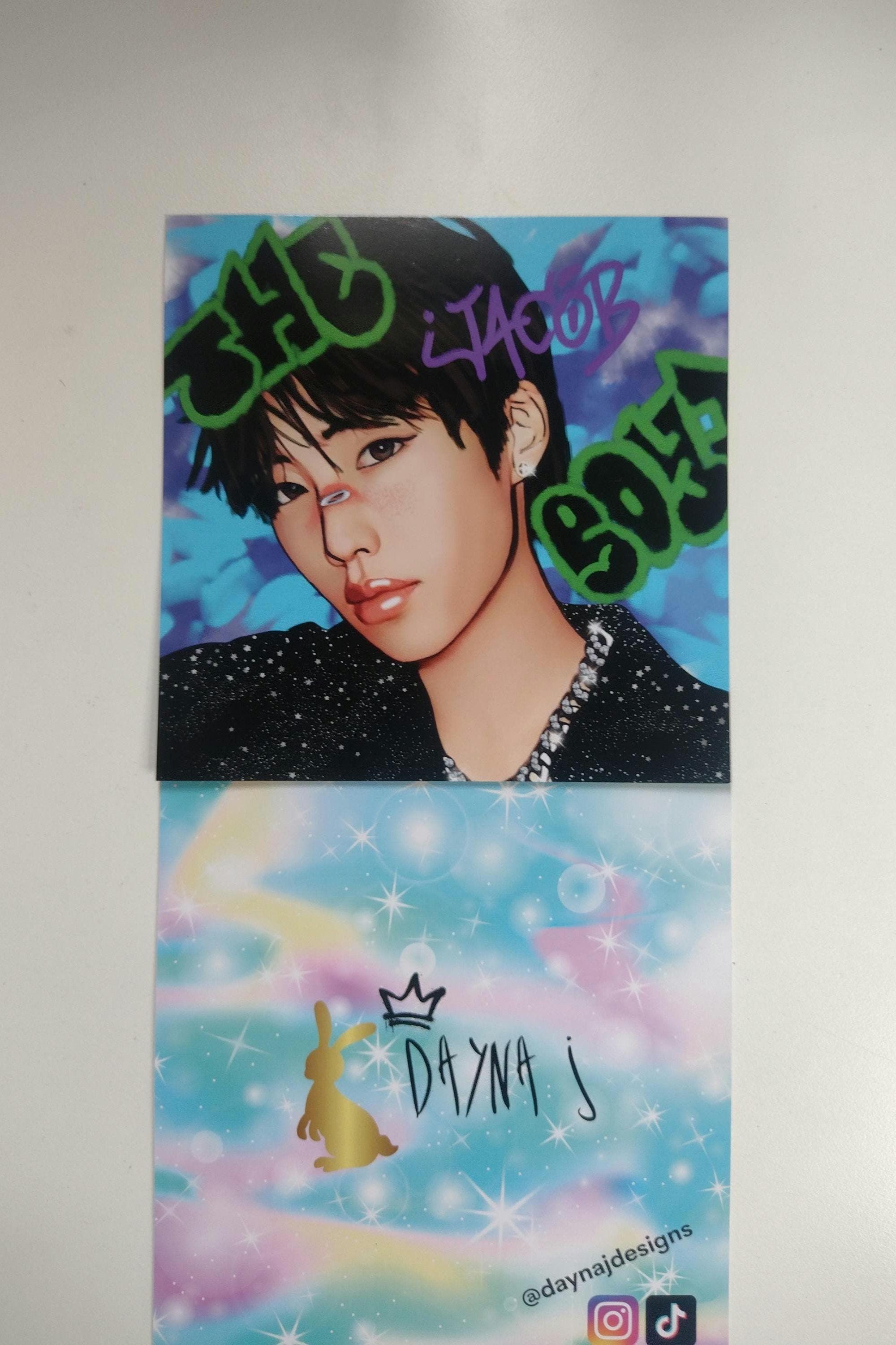 Created artwork via Adobe suite, hand-drawn/digitally created by me. This is an square card print, dimensions are 14X14cm. Printed on glossy deluxe card front and back. The back of the card is the second photo, with my brand name.